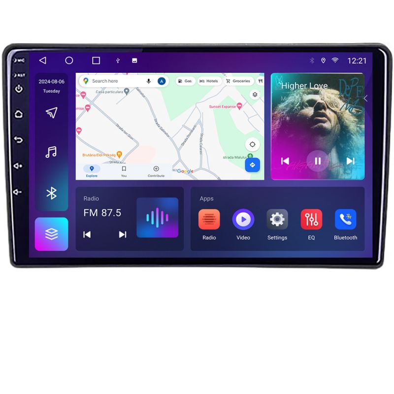 Cu sistem de operare Android 12, procesor 4xCore, Bluetooth încorporat, intrare USB, memorie RAM 2GB, ecran tactil capacitiv, radio cu RDS, control comenzi volan, GPS și DSP integrate