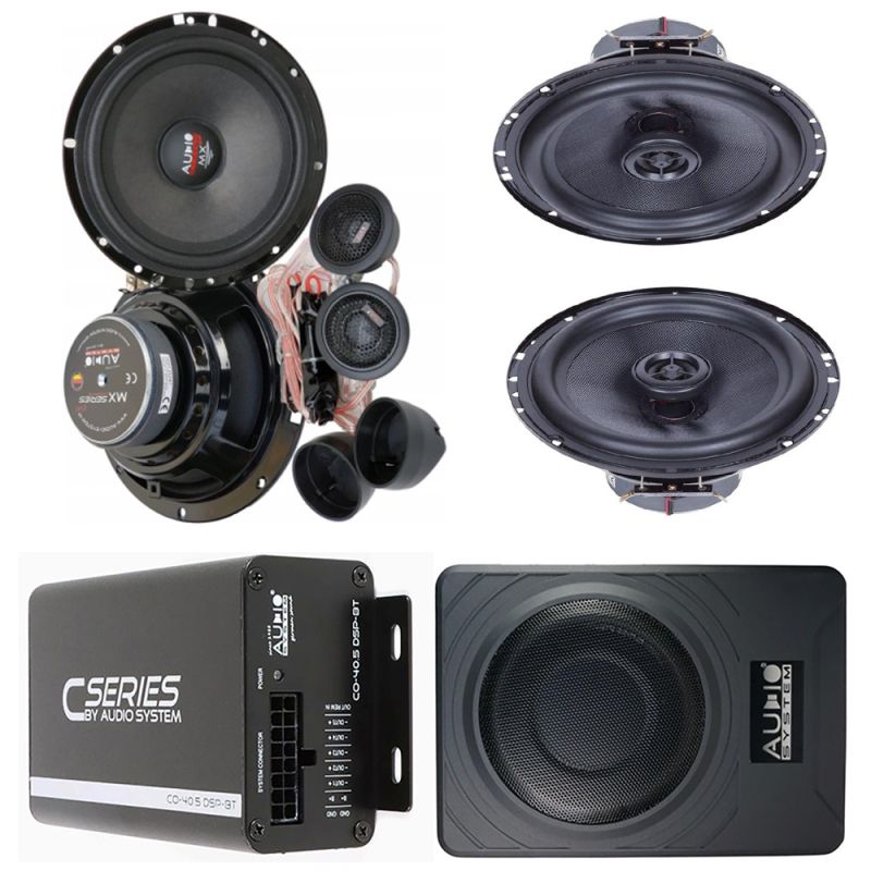 2. csomag Audio rendszer MX 165 EVO hangszórók + 2 MXC 165 EVO + 5 csatornás erősítő + ülés alatti mélynyomó és szerelési tartozékok