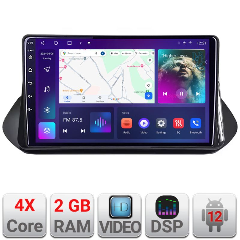 Cu sistem de operare Android 12, procesor 4xCore, Bluetooth încorporat, intrare USB, memorie RAM 2GB, ecran tactil capacitiv, radio cu RDS, control comenzi volan, GPS și DSP integrate