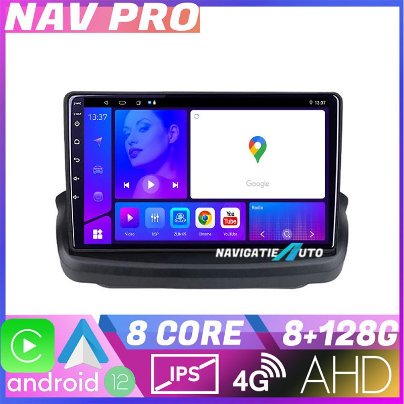 Android 12 ∙ Nyolcmagos processzor ∙ 8 GB RAM + 128 GB ROM ∙ 4G és WiFi ∙ GPS ∙ AHD kamera bemenet ∙ USB DVR kamera bemenet