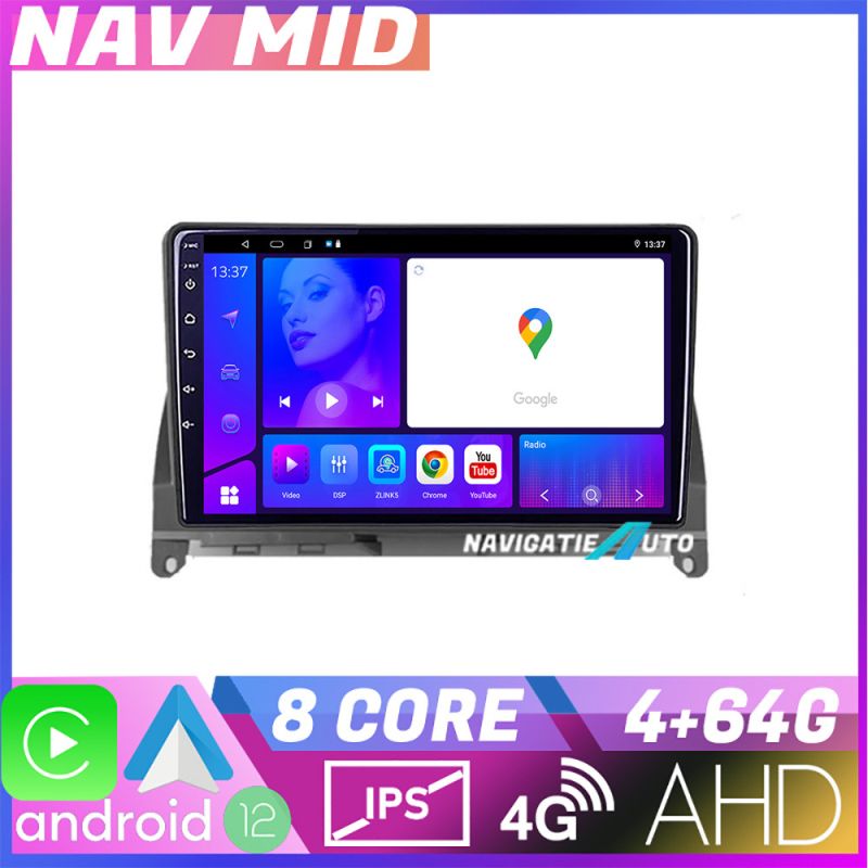 Android 12 ∙ Nyolcmagos processzor ∙ 4 GB RAM + 64 GB ROM ∙ 4G és WiFi ∙ GPS ∙ AHD kamera bemenet ∙ USB DVR kamera bemenet