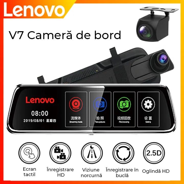 Oglinda cu camera DVR Lenovo V7 ecran de 9.66 inch 1080 fata 1080p spate Wifi Blind Spot Adas