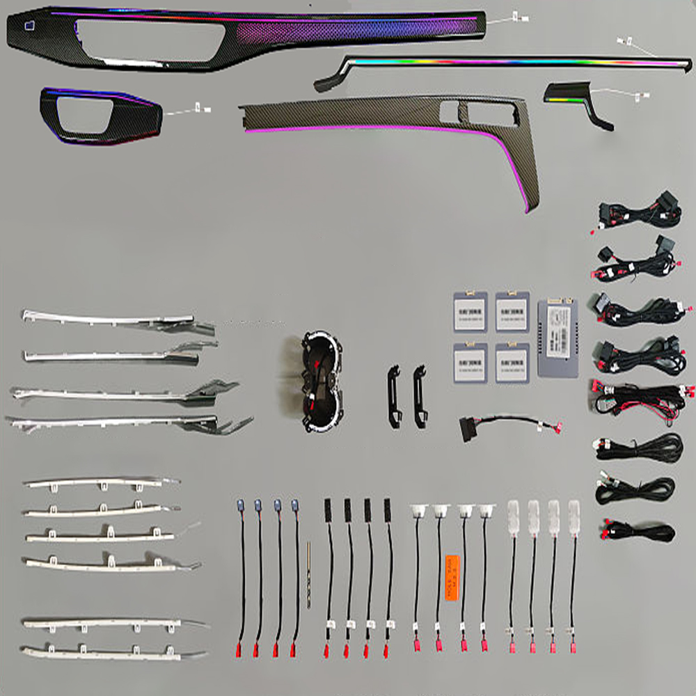 Conductor acrilic, LED-uri RGB incorporate, importate din Taiwan, lumina este difuză și cu protecție pentru ochi. Oferă o experiență de condus mai confortabilă și personalizată pentru proprietarii de mașini.