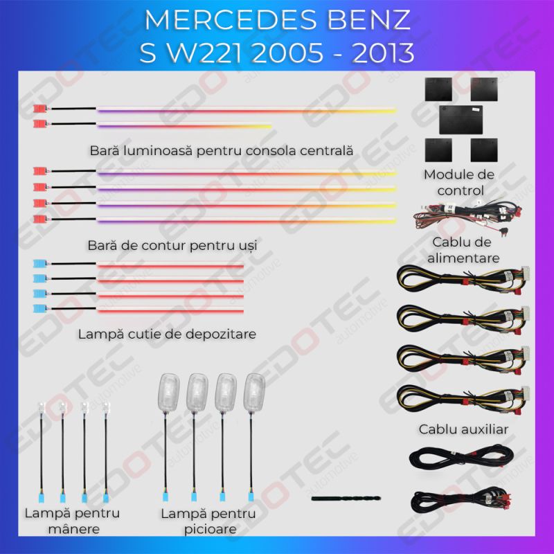 Luminile ambientale pot fi controlate din Sistemul Original și de pe aplicația telefonului.