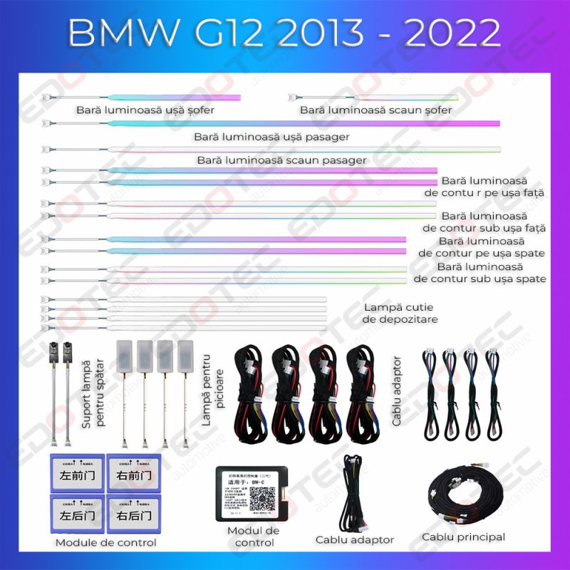 Lumini ambientale BMW Seria 7 G12 2013 - 2022 dedicat det complet control telefon sau sistemul original