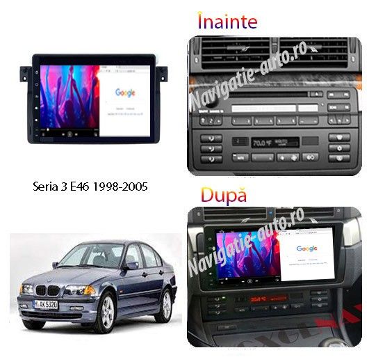 Masinile cu radio-cd de fabrica (fara ecran mare) vor avea nevoie de o rama de relocare: Rama relocare Bmw E46 Masinile cu navigatie cu ecran mare de fabrica au nevoie la instalare de urmatorul cablu special de 5m: Cablu Bmw seria 3 e46 Dynavin