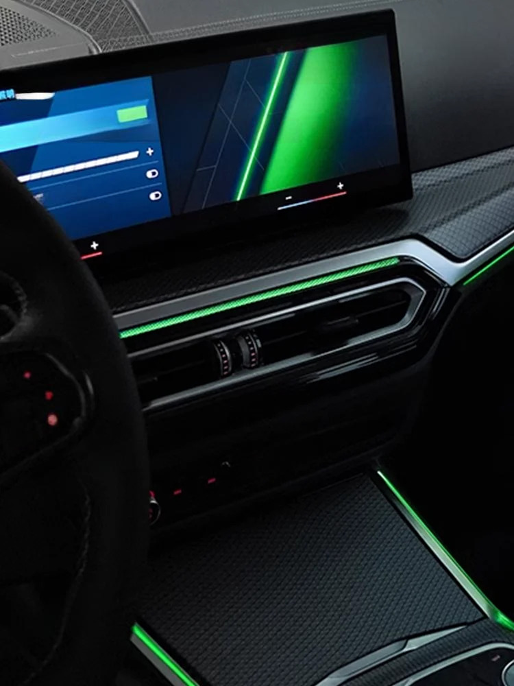 Conductor acrilic, LED-uri RGB incorporate, importate din Taiwan, lumina este difuză și cu protecție pentru ochi. Oferă o experiență de condus mai confortabilă și personalizată pentru proprietarii de mașini.