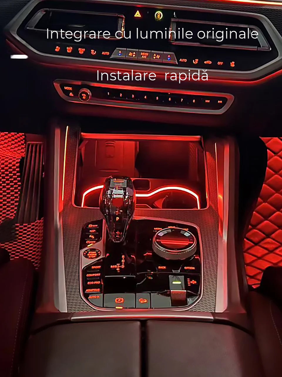 Conductor acrilic, LED-uri RGB incorporate, importate din Taiwan, lumina este difuză și cu protecție pentru ochi. Oferă o experiență de condus mai confortabilă și personalizată pentru proprietarii de mașini.