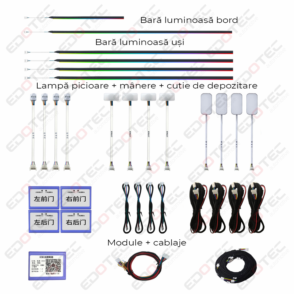 Conductor acrilic, LED-uri RGB incorporate, importate din Taiwan, lumina este difuză și cu protecție pentru ochi. Oferă o experiență de condus mai confortabilă și personalizată pentru proprietarii de mașini.