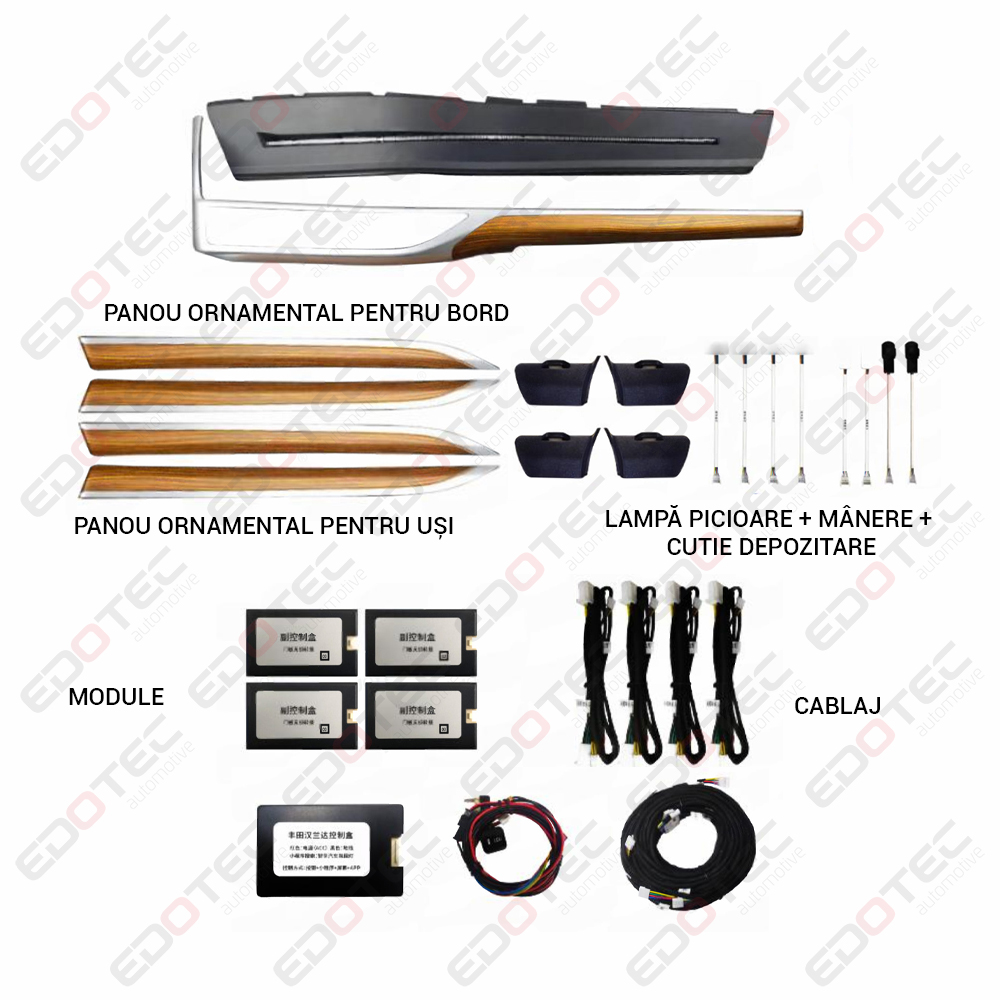Conductor acrilic, LED-uri RGB incorporate, importate din Taiwan, lumina este difuză și cu protecție pentru ochi. Oferă o experiență de condus mai confortabilă și personalizată pentru proprietarii de mașini.