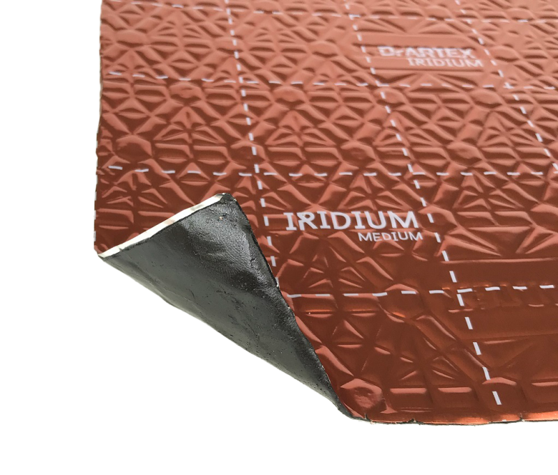 Dr Artex Iridium Medium este un material vibroacustic de 2.0 mm grosime, conceput pentru a reduce vibrațiile și zgomotele structurale în toate zonele mașinii: uși, plafon, podea, portbagaj, aripi și capotă. Se aplică rapid, fără unelte speciale, fără mizerie și fără miros – datorită compoziției fără bitum.